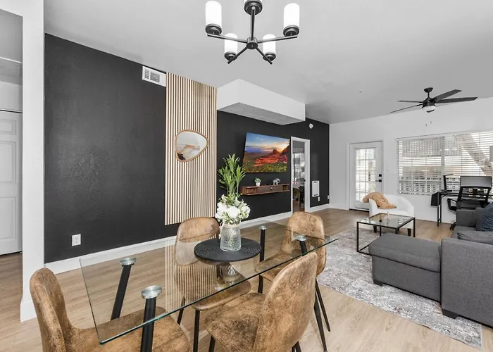 2-slaapkamer Modish 2Br Pickleball & Basketball Ct,Pool,Bbq&Pet Frndly Scottsdale appartement ligt in de North Scottsdale wijk op 3 km afstand van het CrackerJax en heeft een wellnesscentrum. Dit appartement van 1000 m² biedt toegang tot een privézwembad en ligt vrij dicht bij Celebration of Fine Art.